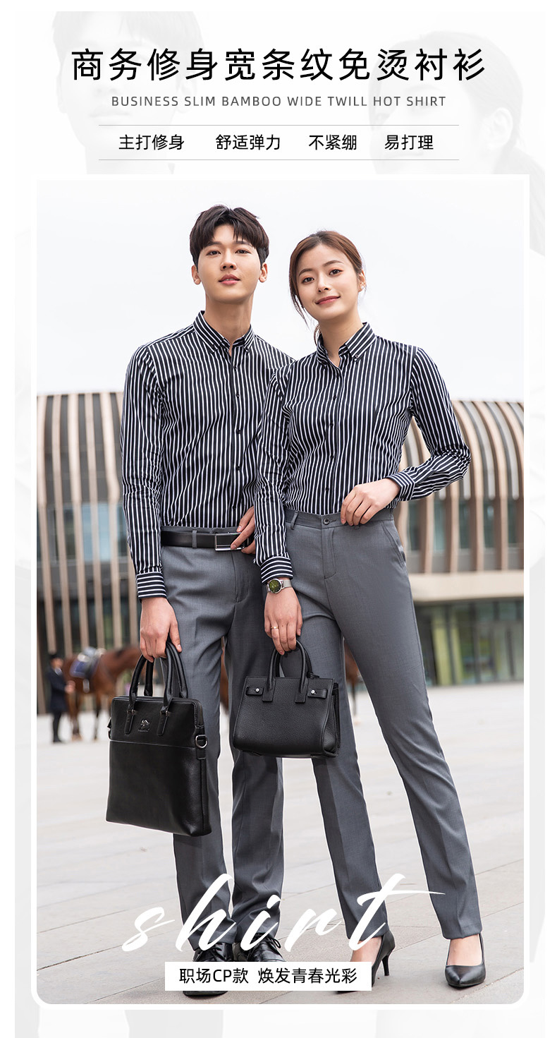 男女条纹长袖衬衫_商务职业正装衬衫工作服定制【2色可选】
