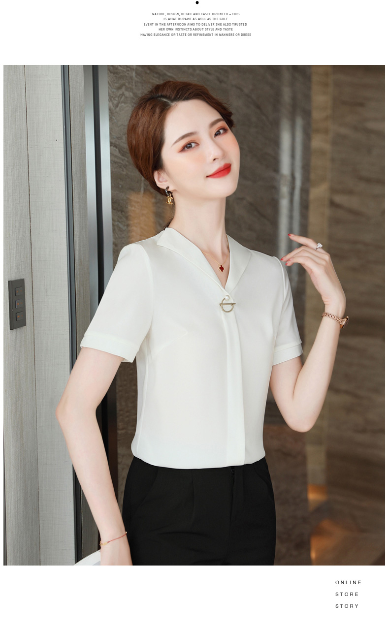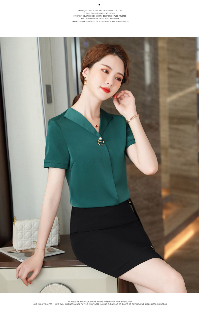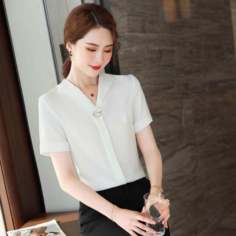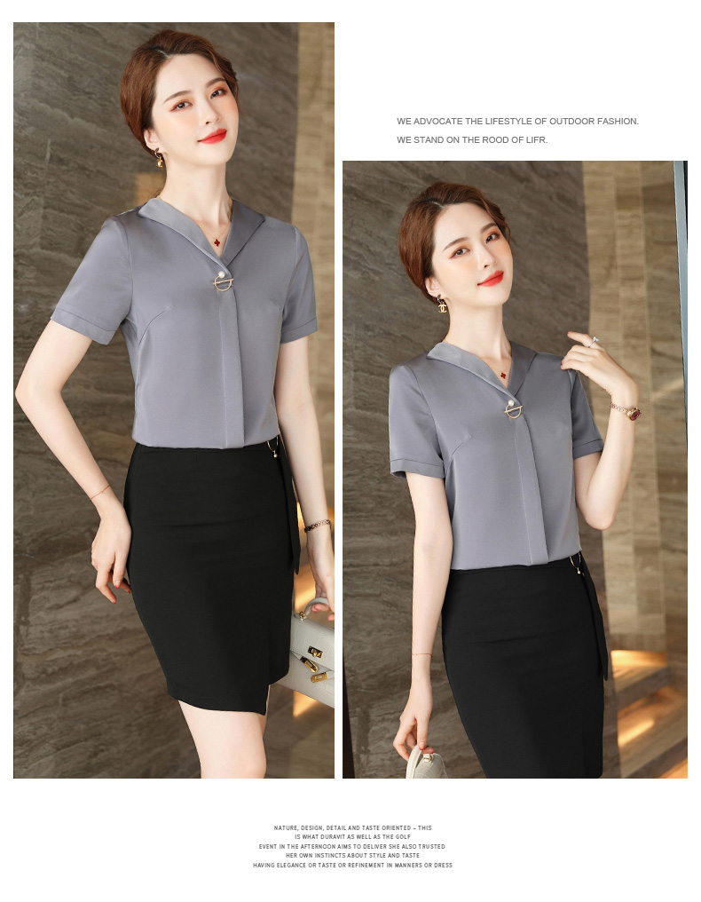 女士通勤短袖衬衫现货_韩版雪纺衬衣_酒店珠宝店白领工作服衬衫【4色可选】
